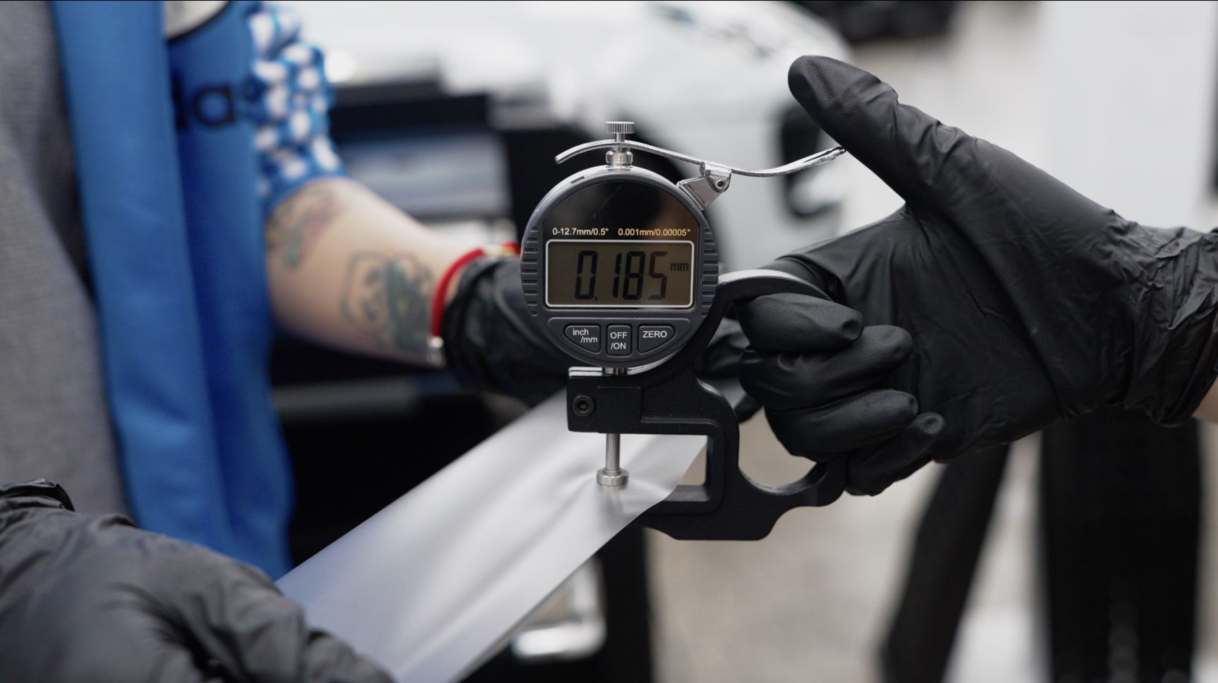 With a total thickness of 190±10% microns (≈ 7.5 mils), we have achieved the ideal balance between satin brilliance, stretchability, and protective thickness; a result made possible by our choice of aliphatic TPU.